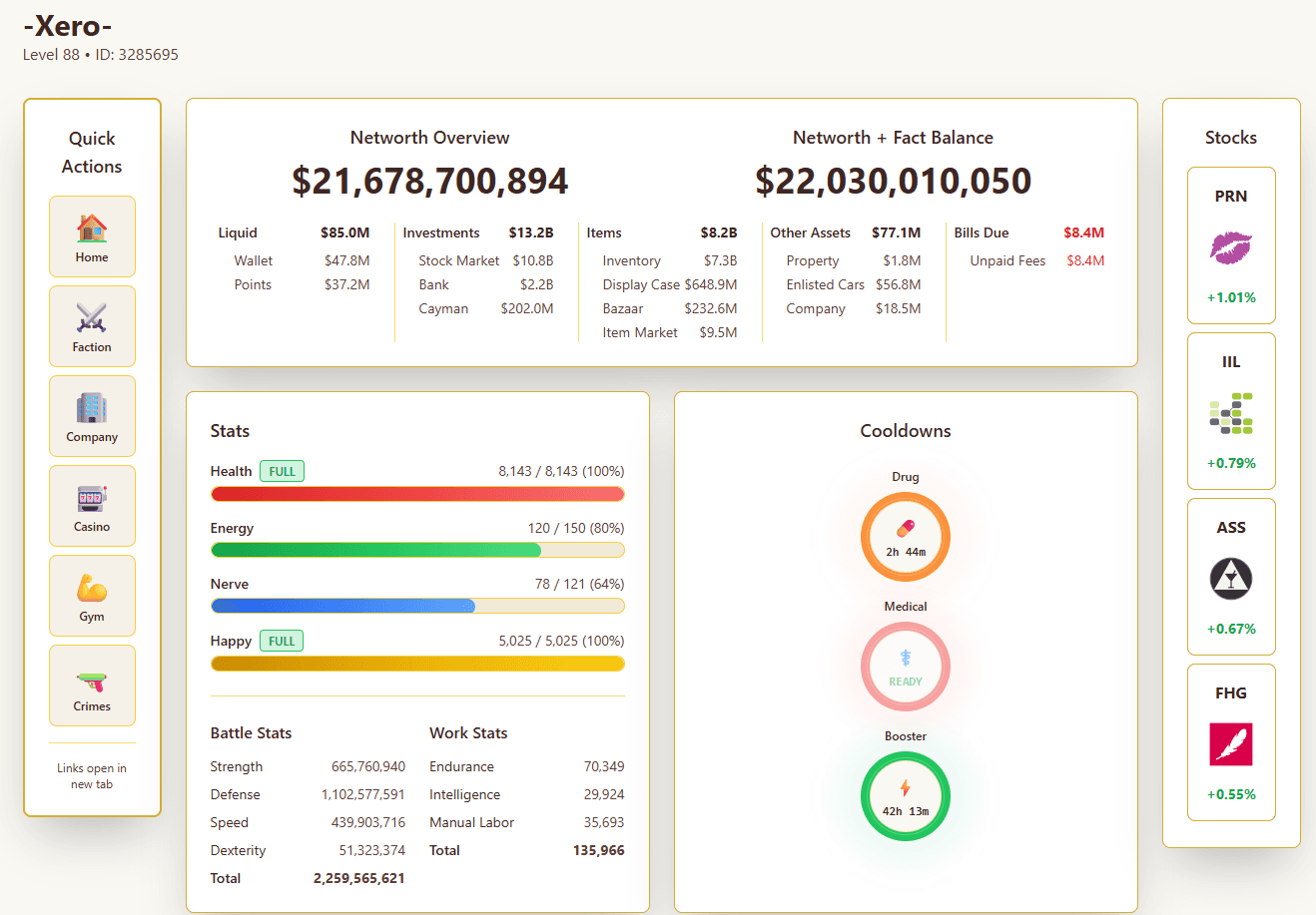 LoginMonitor your money, bars, stats, stocks, cooldowns and more live!